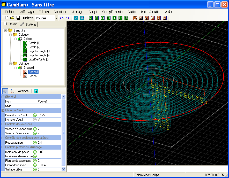 Etape 5 – Insérer un usinage de poche et voir le parcours d'outil