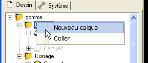 Pour effectuer cette opération, cliquez du bouton droit sur une opération et utilisez l'option Sélectionner les objets de dessin du menu contextuel de l'opération, puis faite un Ctrl + clic gauche sur chacun des 2 cylindres (Ctrl pour conserver la pomme sélectionnée et ajouter les 2 cylindres). Cliquez ensuite du bouton du milieu ou tapez sur la touche Entrée pour valider. Faites la même chose pour les quatre opérations d'usinage.
