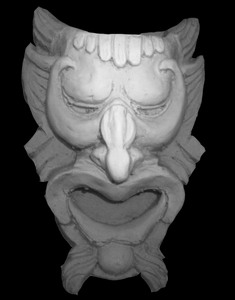 Inspirée par les expériences vues sur ce post de cnczone 3D for Crazies, j'ai photographié un objet immergé dans un bac contenant de l'eau et du colorant alimentaire bleu. J'ai ensuite utilisé un programme de dessin pour filtrer l'image bitmap afin de n'avoir que le canal rouge affiché en niveaux de gris. En théorie, plus la surface de l'objet est loin de la surface du liquide, plus il apparaîtra bleu,. Cela a bien fonctionné, beaucoup mieux que je m'y attendais mais il faut prendre des précautions pour éviter les réflexions de surface et les bulles d'air. Ce n'est peut-être pas une si bonne idée pour faire des cartes de niveau de personnes.