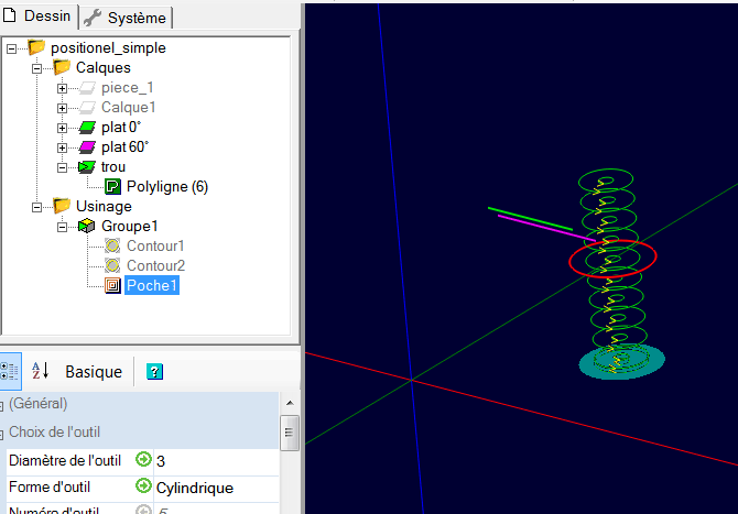 Nous allons maintenant usiner le trou à l'aide d'un usinage de poche.